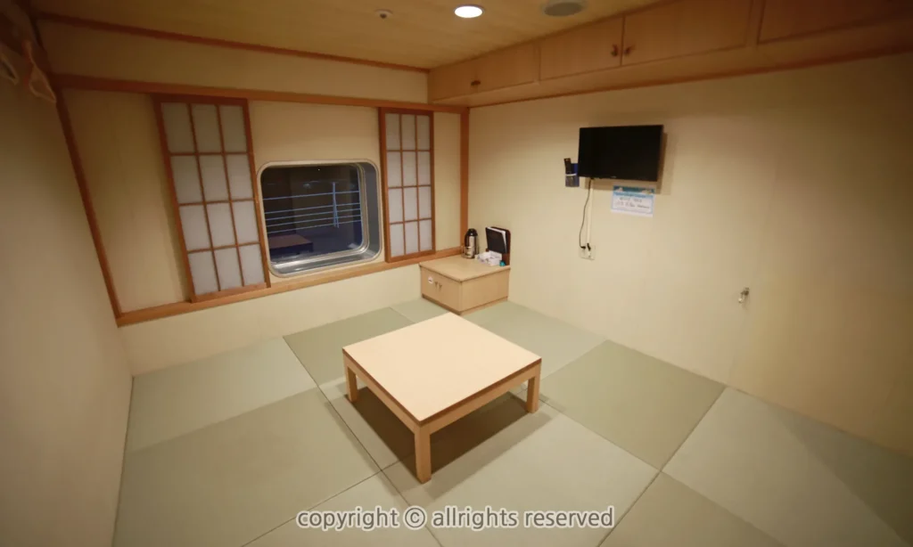 – 일본 여행의 정취를 더하는 따뜻한 다다미방의 매력 : 뉴카멜리아호 1등 5인화실